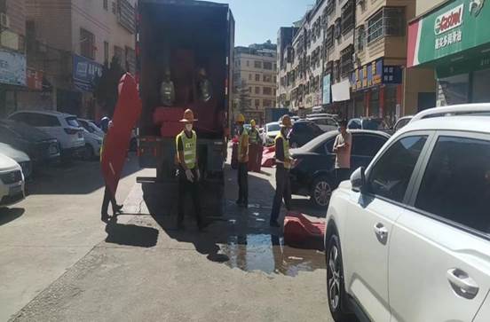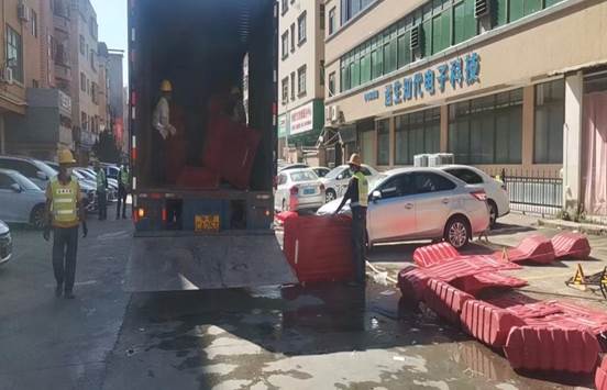 疫情结束后,我项目又安排工人对疫情防控区域的水马进行拆除装车,配合交通局做好解封工作。