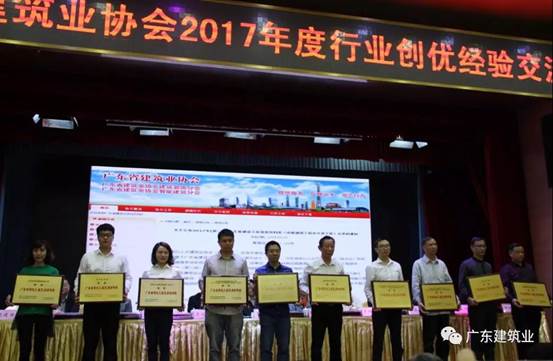 大会分十一批对2017年度我省创优先进企业、创优示范工程以及AAA级信用企业进行了表彰。省住房和城乡建设厅蔡瀛副厅长,行政许可管理处罗锦荣处长,工程质量安全监管处林兆雄处长,建筑市场监管处卿文峰副处长,科技信息处吴学斌副处长;省建设工程造价管理总站卢立明副站长;省社会组织管理局副处长邹丽雅,省建筑业协会梁剑明会长、广州市建筑业联合会杨家峰会长、深圳市建筑业协会尹剑辉会长等领导为获奖代表颁发牌匾和证书。