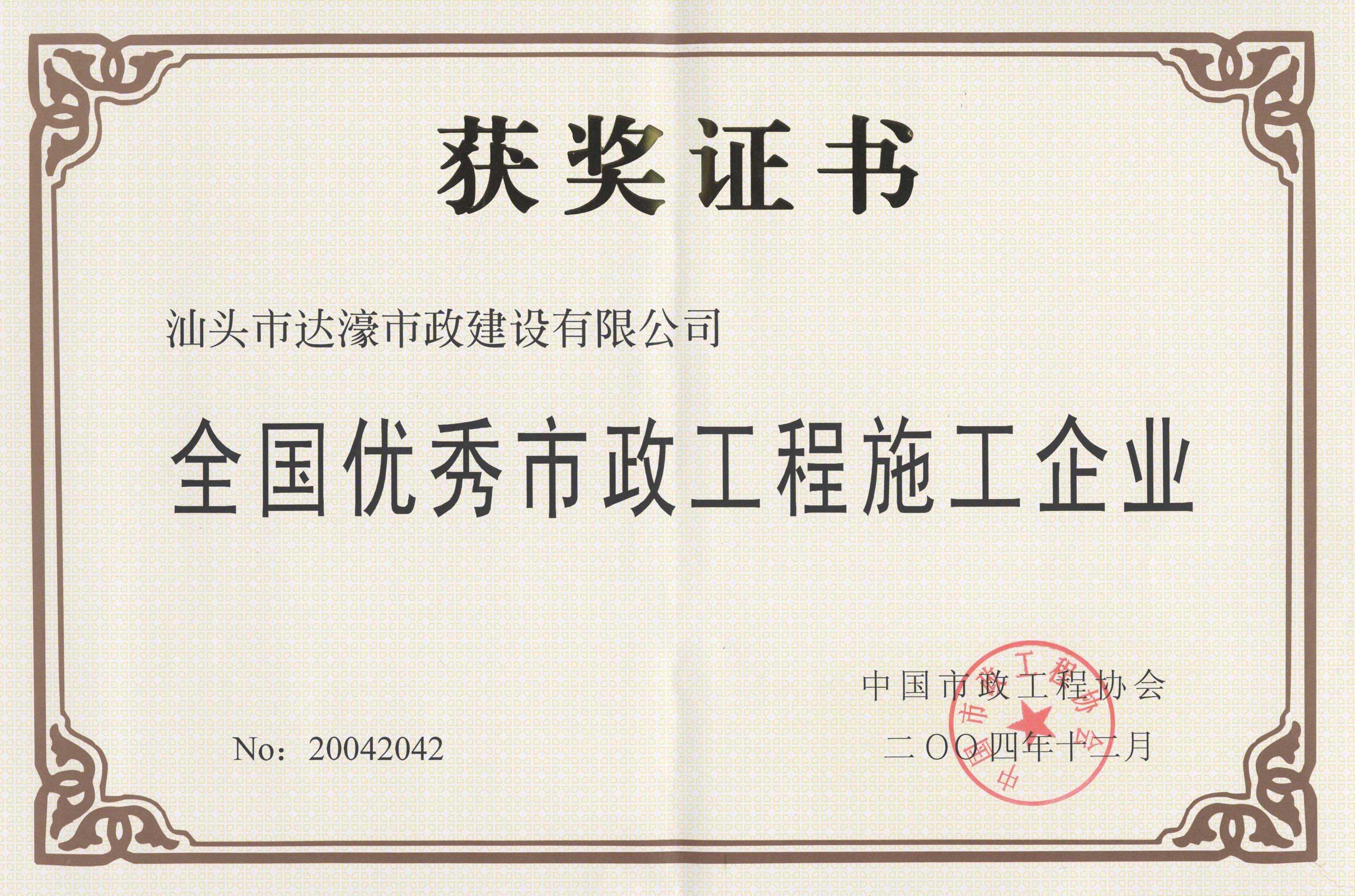 市政公司获得“全国优秀市政工程施工企业”荣誉称号